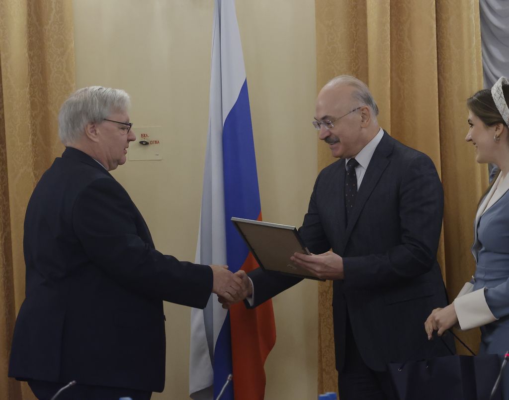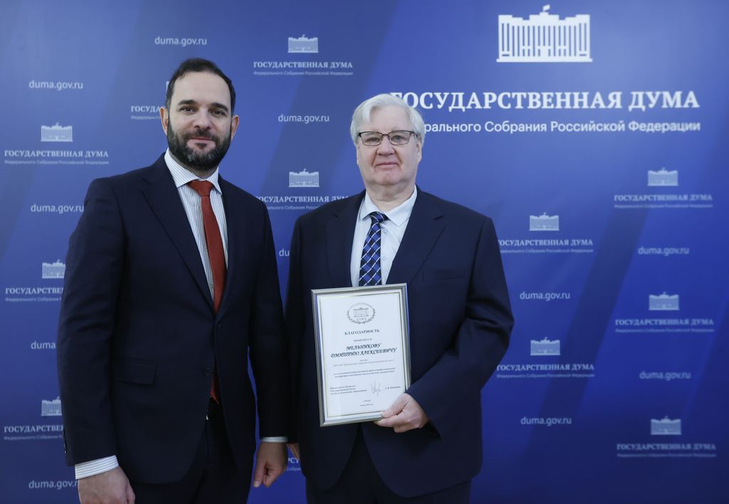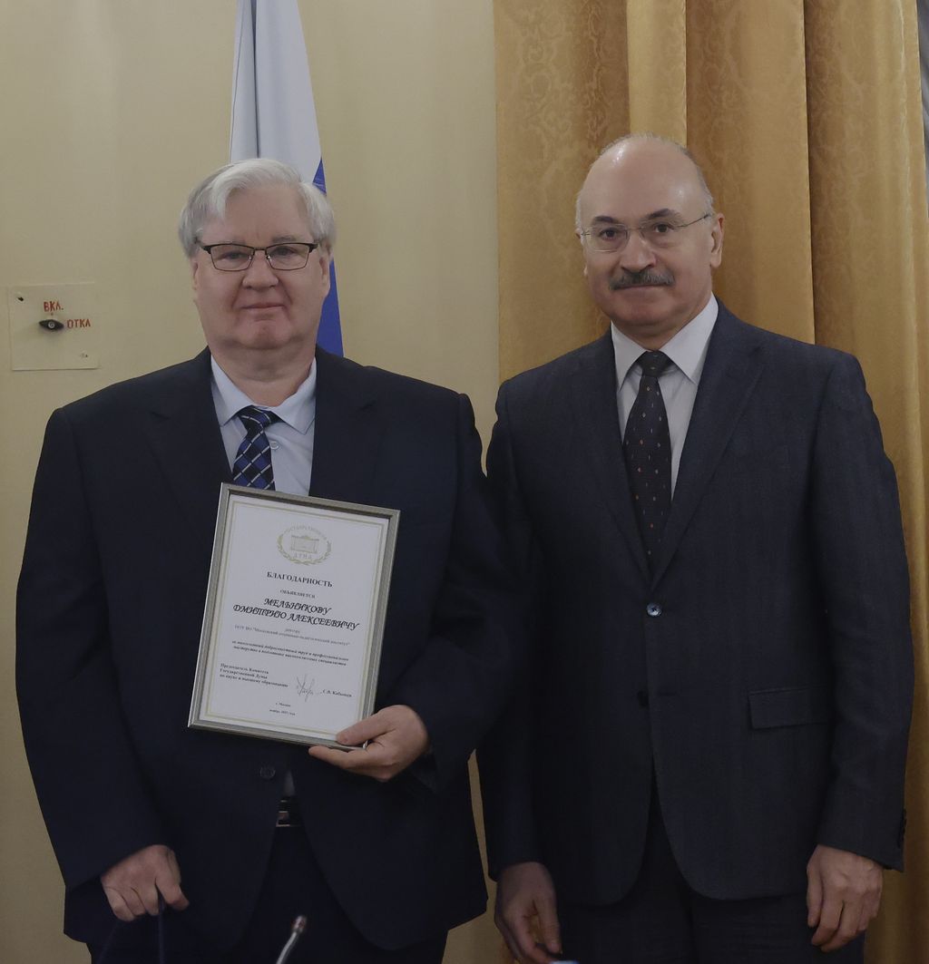 На праздничном мероприятии председатель Комитета Государственной Думы по науке и высшему образованию С.В. Кабышев вручил Д.А. Мельникову Благодарность.