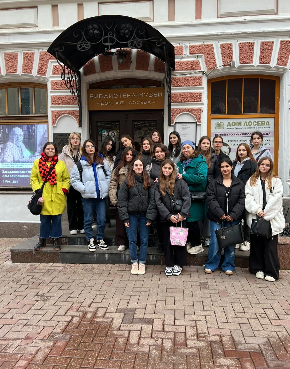 У научной библиотеки и мемориального музея «Дом А.Ф. Лосева», в котором прошлое, настоящее и будущее, наконец, сошлись в одной точке, группа сделала совместное фото. Философское путешествие традиционно завершилось на углу Арбата и Серебряного переулка, где стояла церковь Николы Явленного с чудотворной Ахтырской иконой, к которой приезжали люди из разных уголков России.