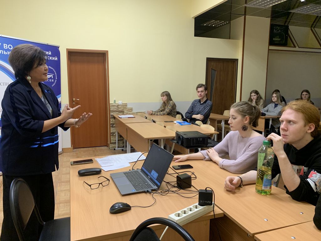 В конце октября интересное занятие по английскому языку для студентов факультета коррекционной педагогики и специальной психологии, факультета государственного и муниципального управления и студентов колледжа провела Бийназарова Назгуль Суйунбековна – доцент, кандидат педагогических наук, преподаватель английского языка Научно-исследовательского университета «Кыргызский экономический университет имени Мусы Рыскулбекова» и Кыргызского государственного университета имени И. Арабаева (г. Бишкек, Кыргызстан).