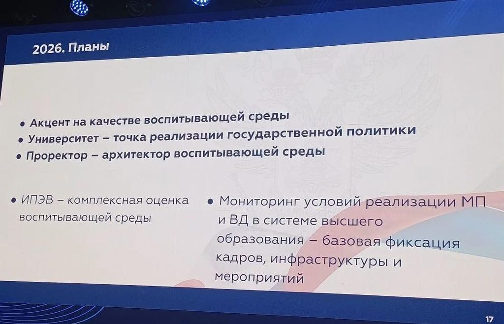 По итогам Конгресса была сформирована единая стратегия воспитательной деятельности в вузах на 2026 год, определены механизмы взаимодействия с партнёрами и органами власти, а также обобщены лучшие региональные практики.