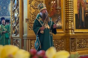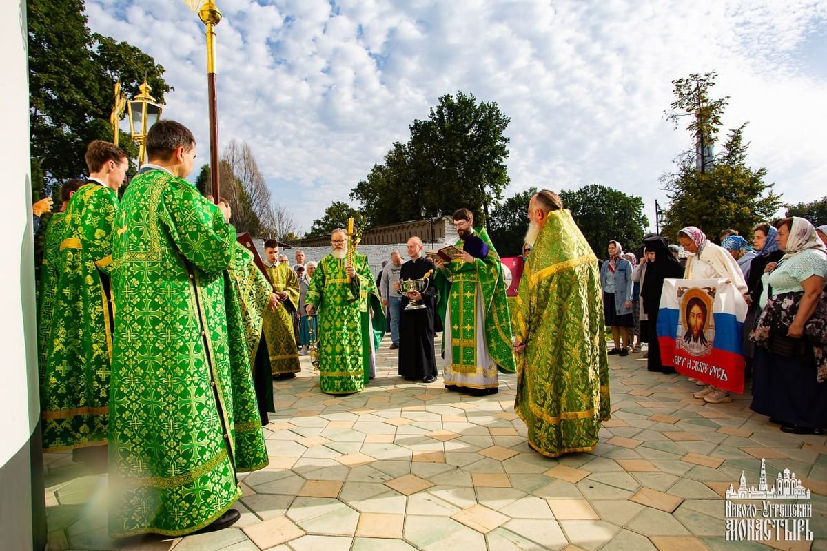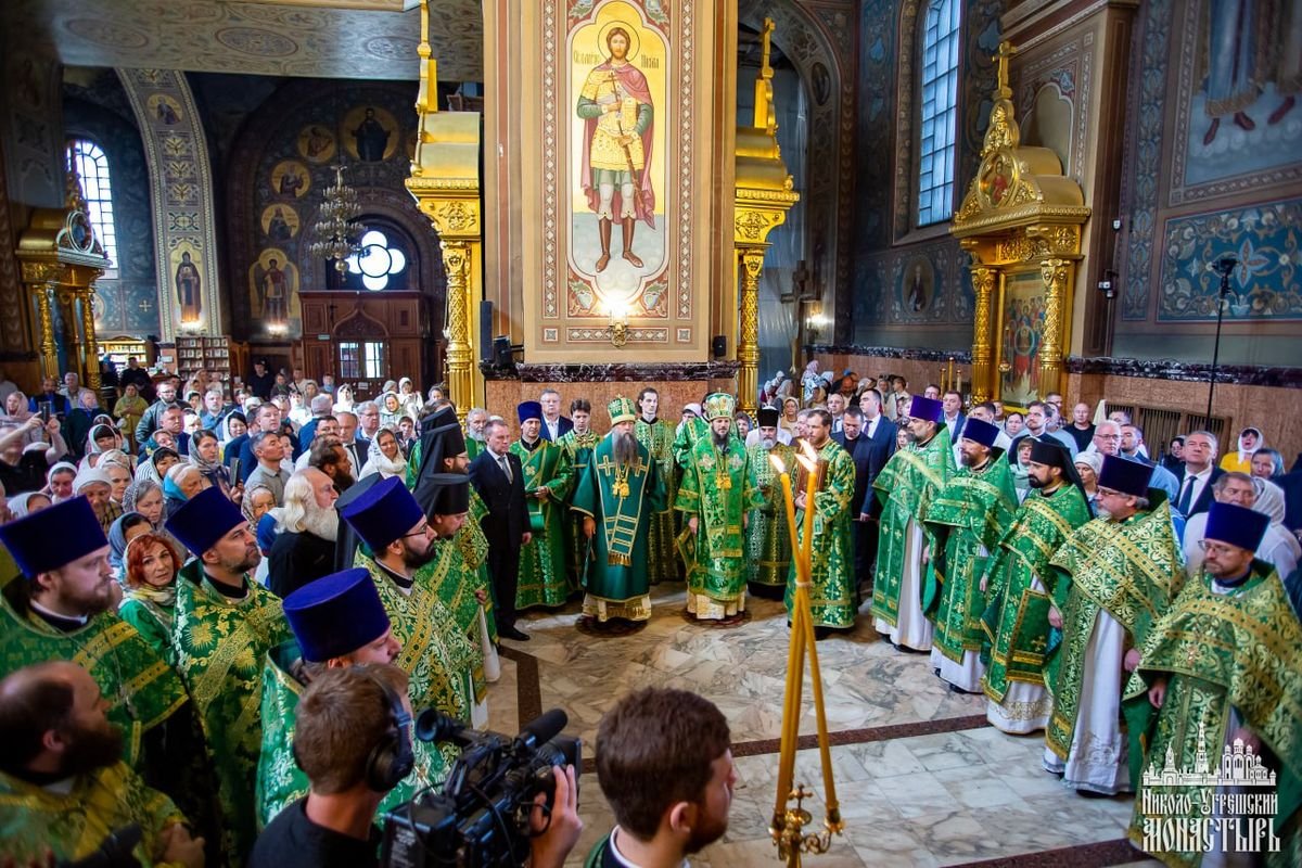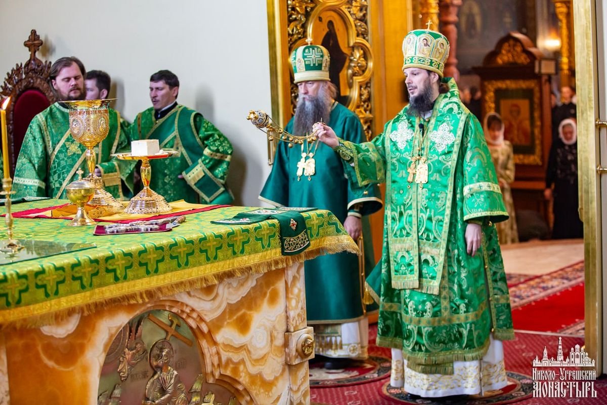 Праздничную Литургию в Спасо-Преображенском соборе, закладка которого в 1880 году состоялась при настоятельстве преподобного Пимена, возглавил епископ Егорьевский Мефодий, наместник Николо-Угрешского монастыря.