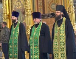 Всенощное бдение в Спасо-Преображенском соборе возглавил заместитель председателя Синодального отдела религиозного образования и катехизации Русской Православной Церкви и преподаватель семинарии игумен Иоанн (Рубин), ему сослужили монастырская и семинарская братия.