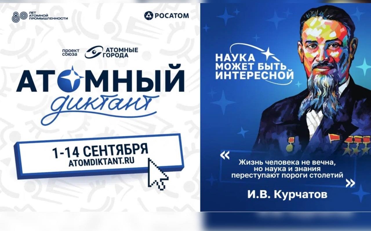 Атомный диктант – ежегодная викторина по истории атомной промышленности, которая проводится в онлайн- и офлайн-форматах на территории России и за рубежом. Организатором международного просветительского проекта, призванного способствовать развитию интереса к науке, экологии, безопасности и истории атомной отрасли, выступает Союз организаций атомной отрасли «Атомные города».