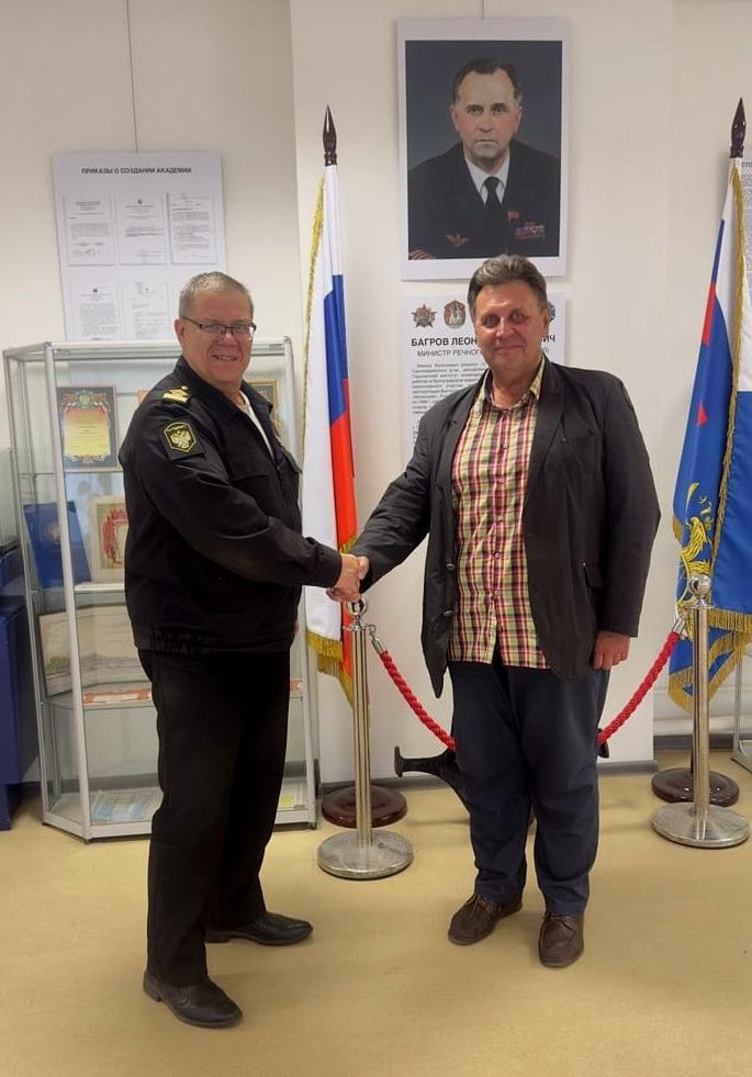 10 сентября 2025 года состоялась встреча проректора МСПИ по воспитательной работе и молодёжной политике Д.В. Смирнова с В.И. Ивановым – директором Колледжа Академии водного транспорта им. Министра речного флота Л.В. Багрова.