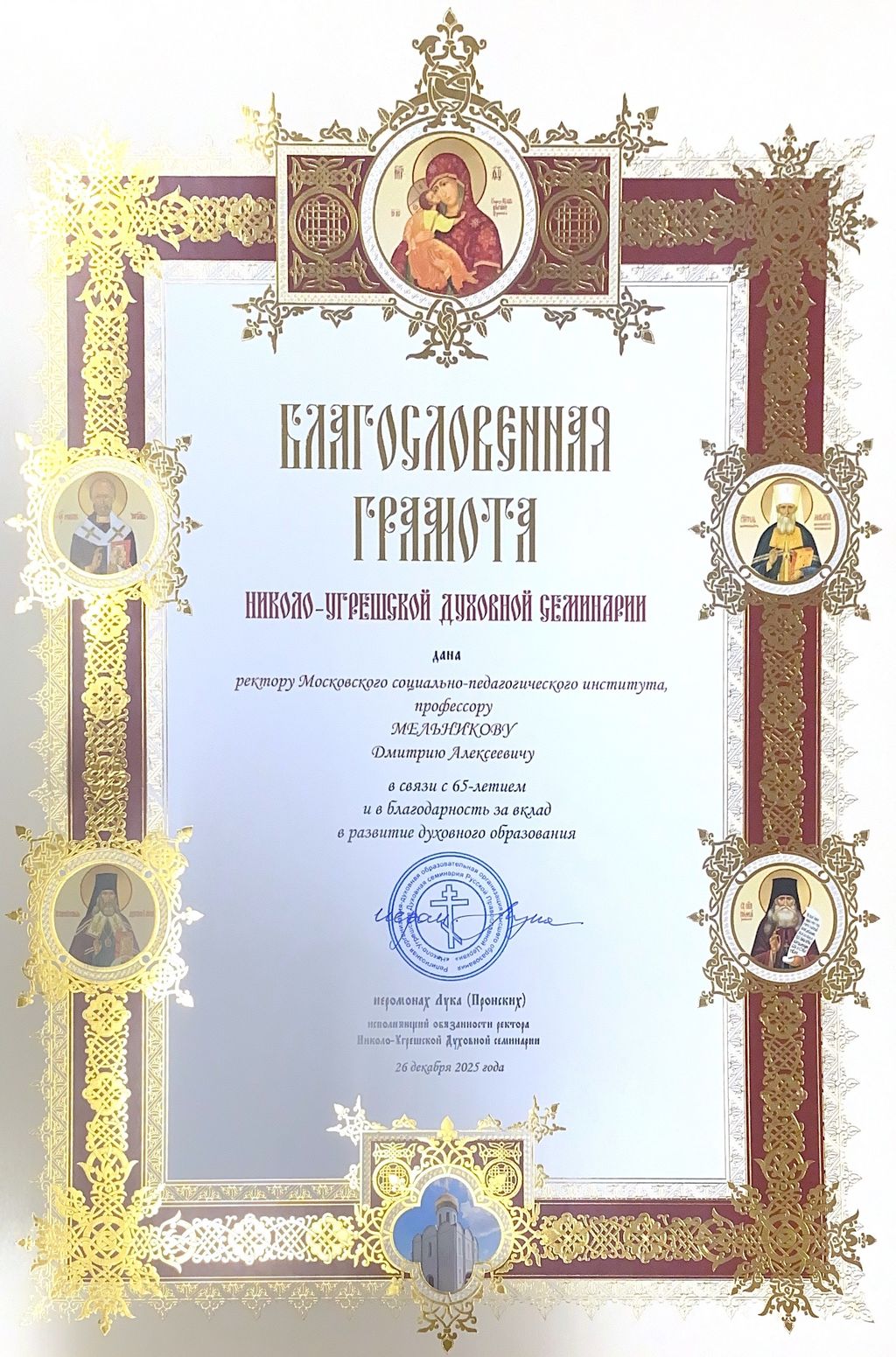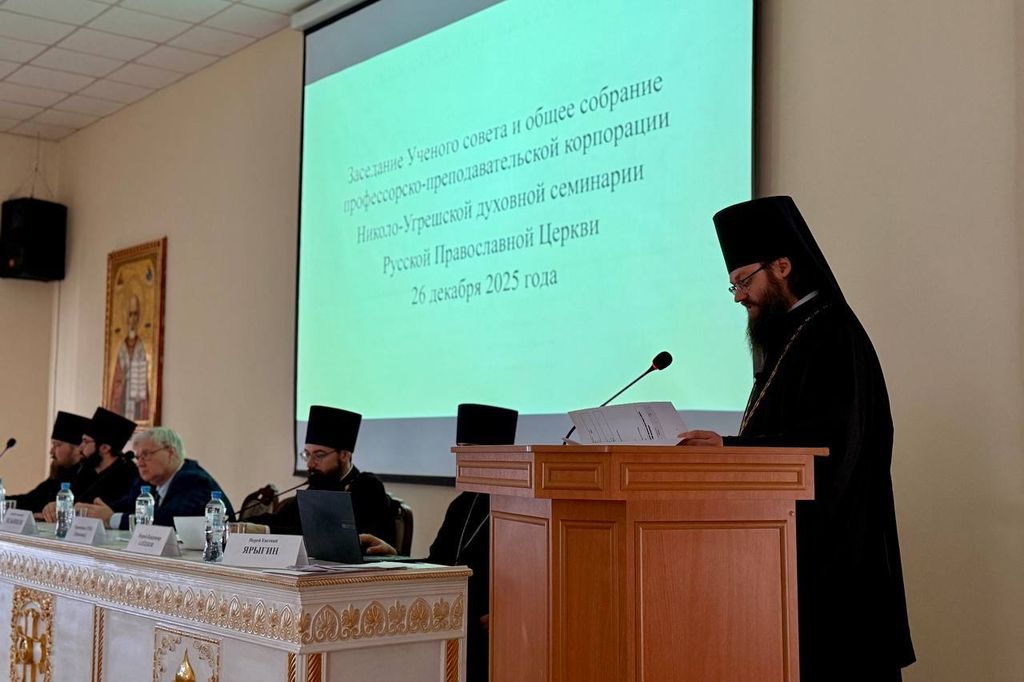 26 декабря 2025 года в Николо-Угрешской духовной семинарии состоялось заседание Учёного совета и Общего собрания профессорско-преподавательской корпорации, в котором в качестве почётного гостя принял участие ректор МСПИ Д.А. Мельников.