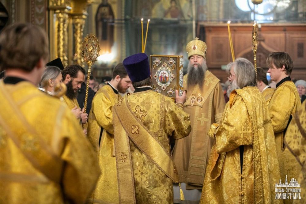 Божественную литургию в Спасо-Преображенском соборе возглавил епископ Егорьевский Мефодий. Его высокопреподобию также сослужил и.о. ректора Николо-Угрешской семинарии иеромонах Лука (Пронских) и преподаватели духовной школы в священном сане.